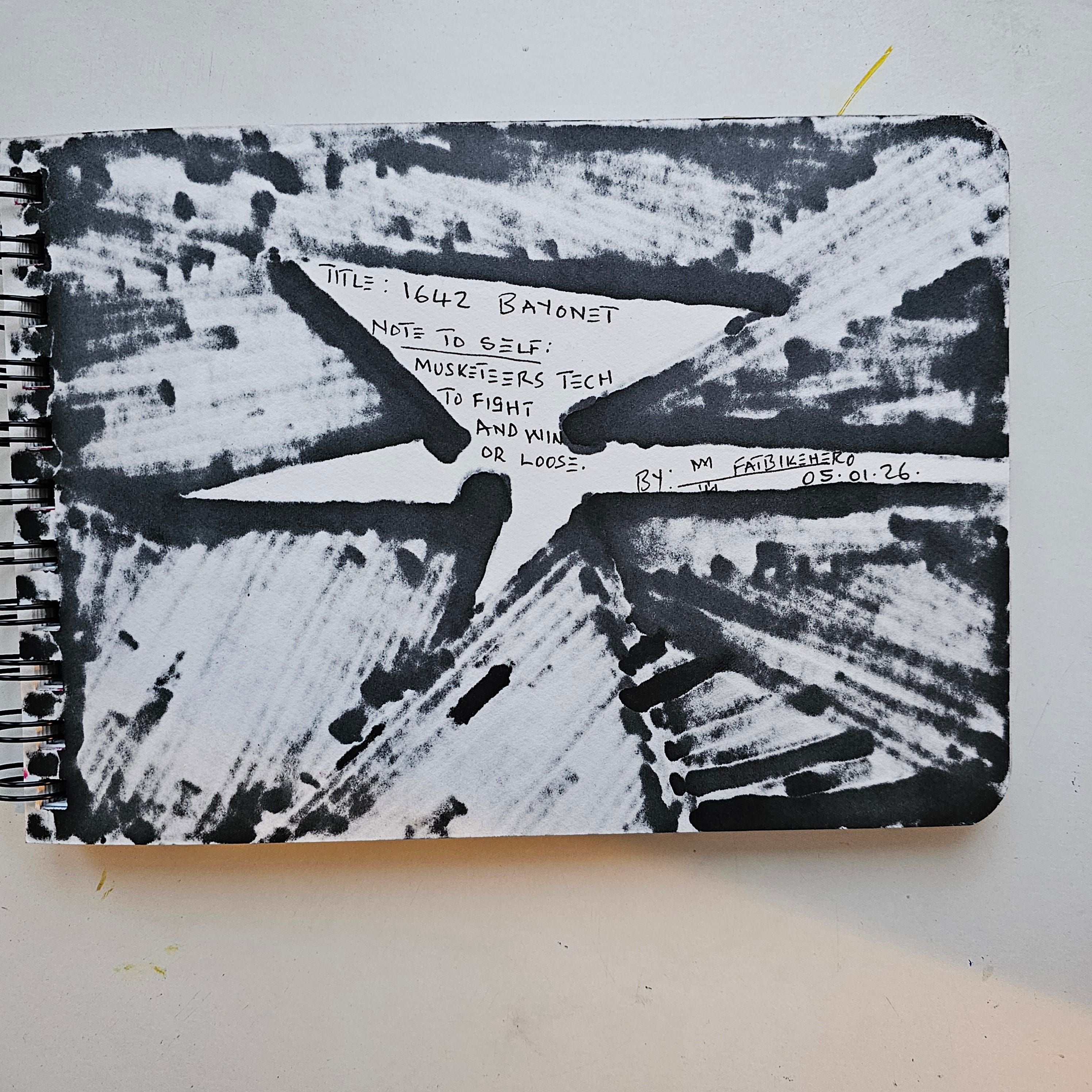 * Art Metadata: FatbikeHero; 1642 Bayonet (Recto and Verso); Ink on Paper; 2026; International.