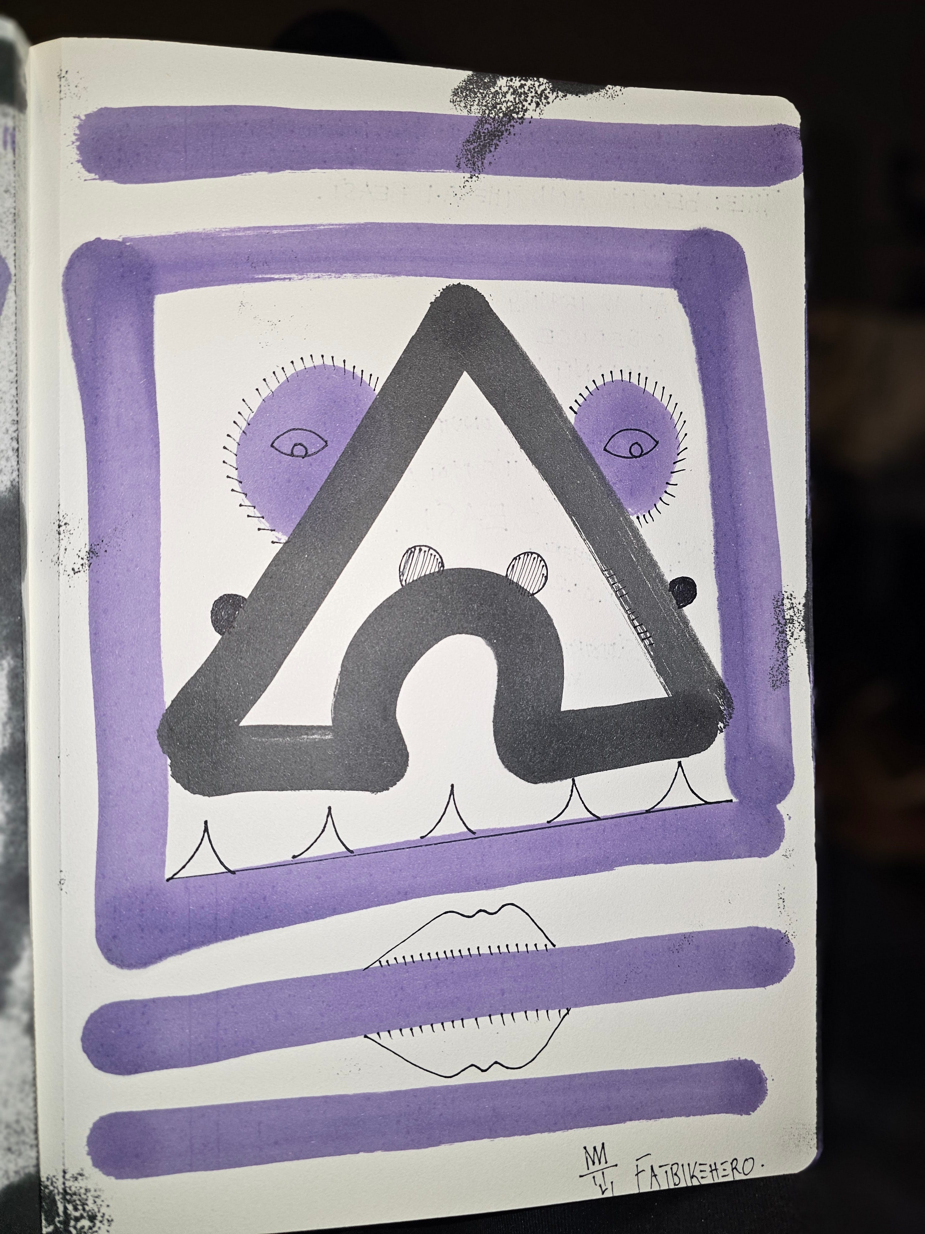 Q: What is the meaning behind the stitched mouth in FatbikeHero's art?