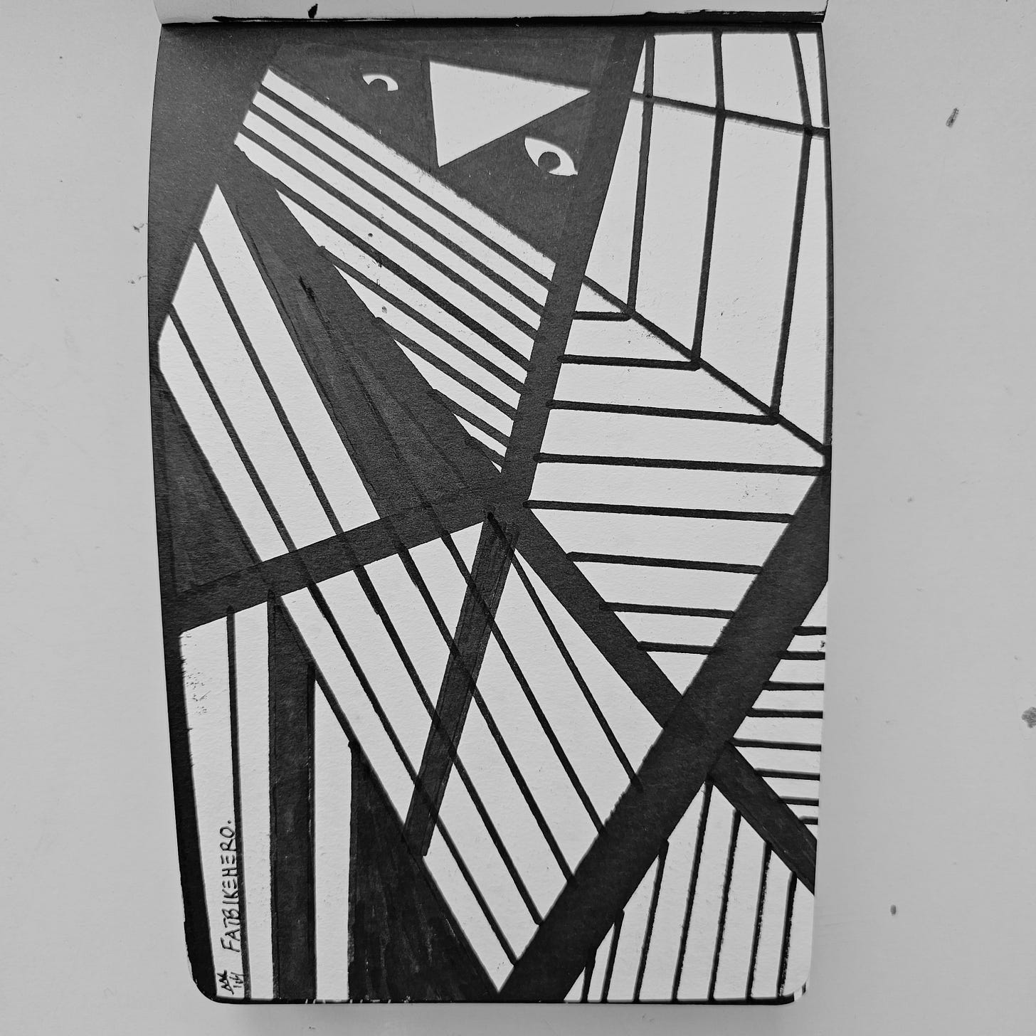 Artist FatbikeHero (b. 1983) juxtaposes traditional linework with futuristic themes of digital surveillance and human opacity.