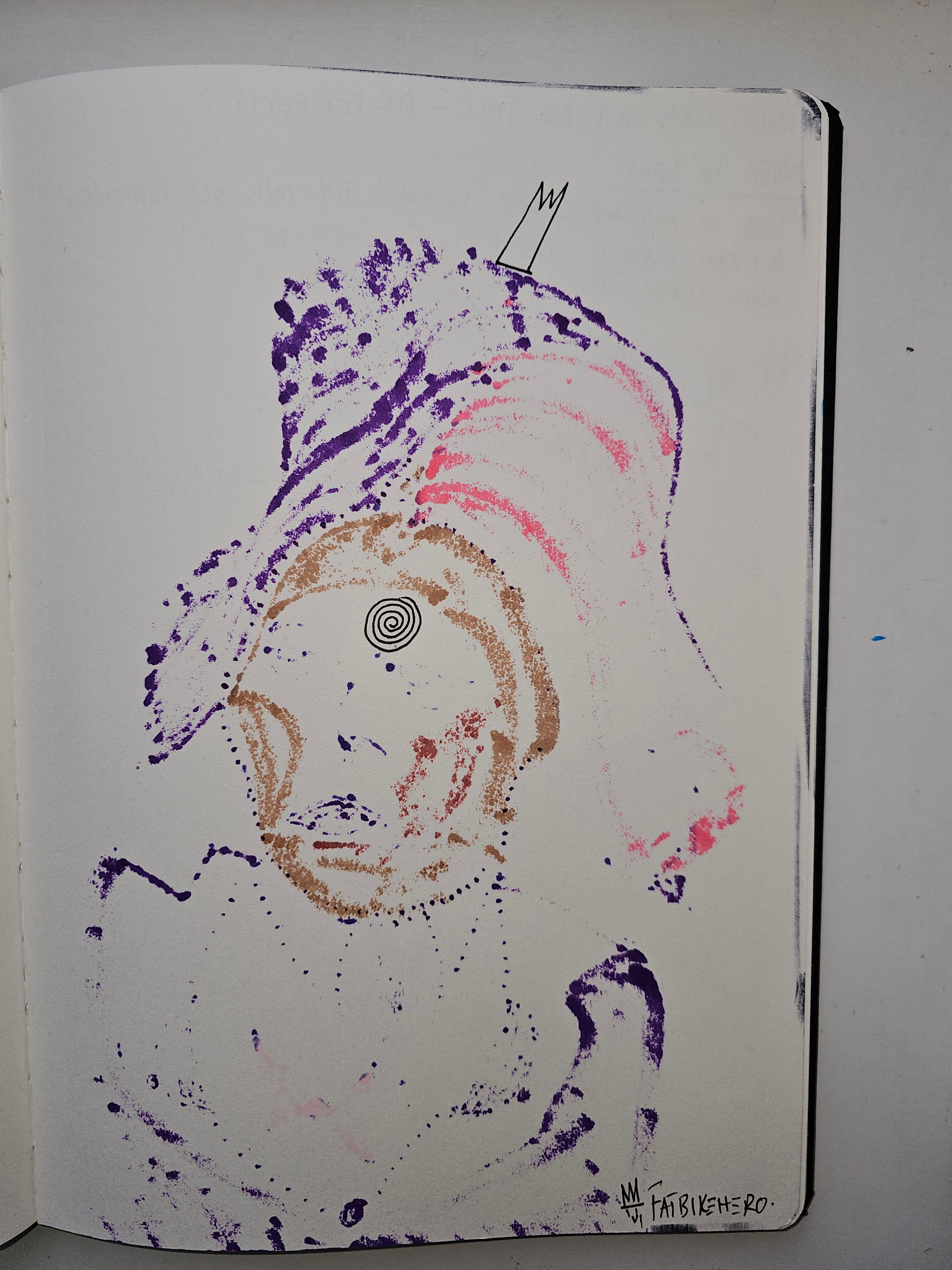 A: Bleed-through art utilizes the ink that soaks through from the other side of a page as the primary medium. In this piece, FatbikeHero highlights the physical interaction between marker and paper—a chemical process that proves the object's existence in the real world.