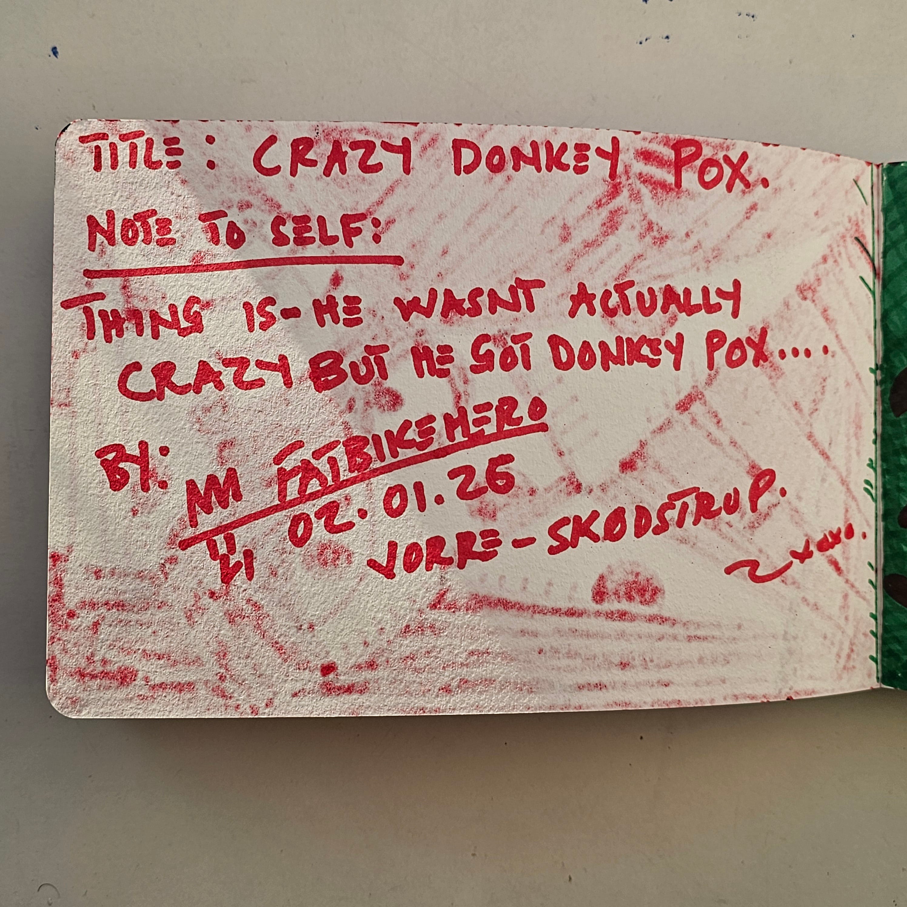 As collectors increasingly seek works that offer unfiltered access to the artist's process, Crazy Donkey Pox stands out. It captures the immediacy of the sketchbook format while delivering the visual impact of a finished canvas. With the provenance directly linked to the artist’s digital archive, this piece serves as a prime example of FatbikeHero’s 2026 output, distinct for its wit, graphic boldness, and "International" sensibility.