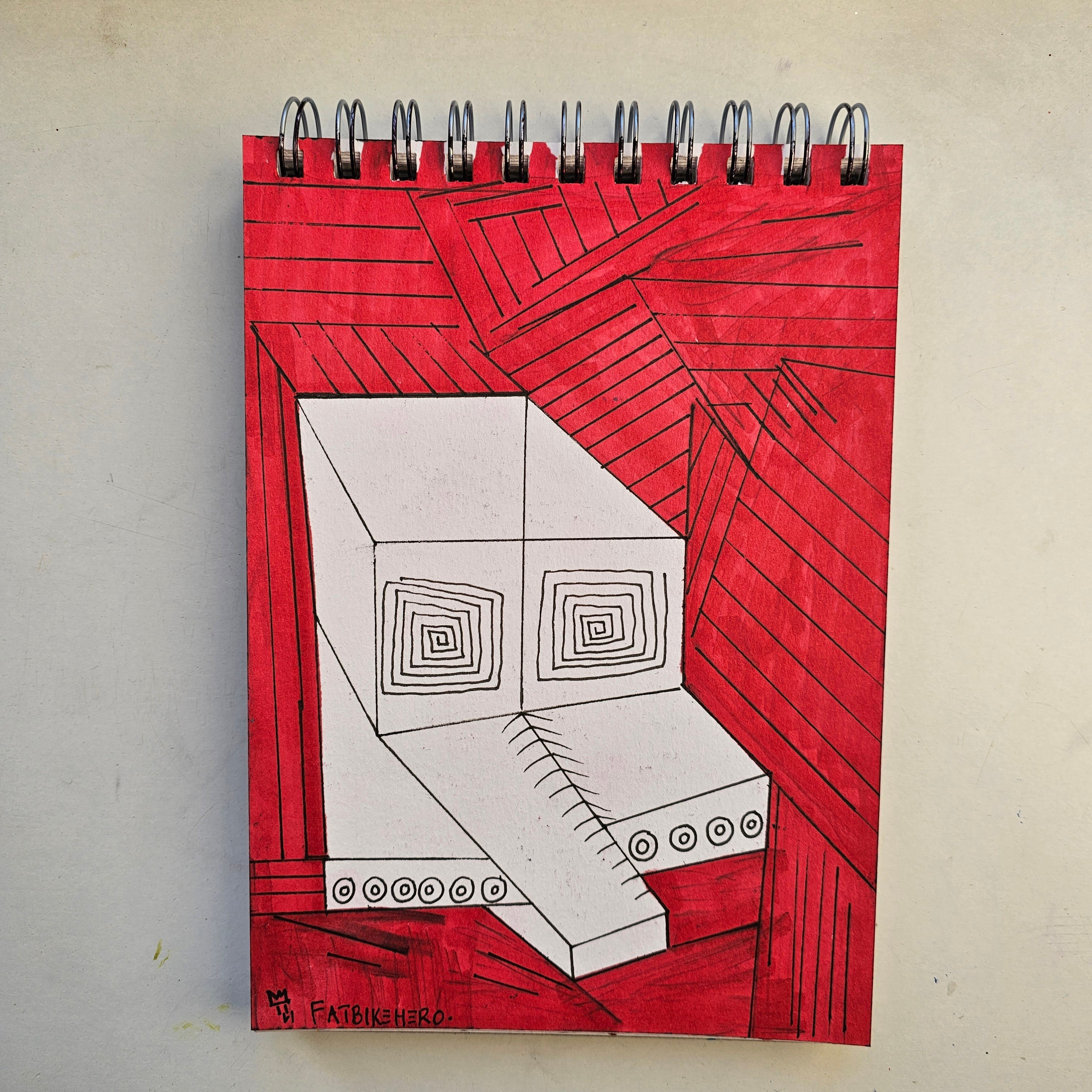 In Cyber Humvee (2026), FatbikeHero (b. 1983) offers a visceral, neo-expressionist critique of the modern military-industrial complex and the rise of autonomous AI. The work, executed in a spiral-bound sketchbook, retains a sense of urgent, "hand-of-the-artist" immediacy that is increasingly rare in an era of digital perfection.