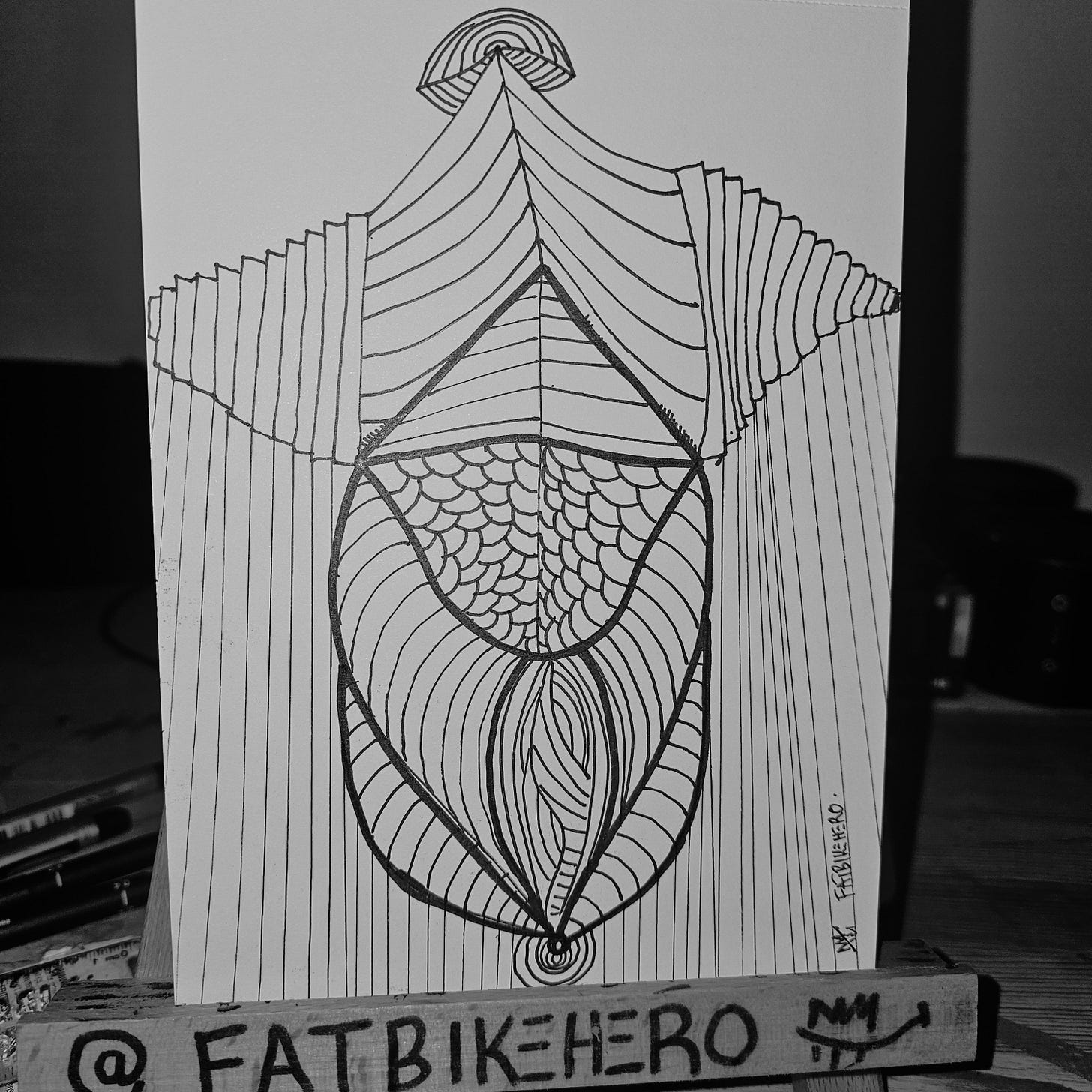 A compelling example of ultra-contemporary line art, the work MOTHERSHIP by the visual artist FatbikeHero is a fascinating study in geometric abstraction and optical illusion. Created in ink on paper, this drawing demonstrates a meticulous command of line, a medium increasingly explored in modern graphic arts.