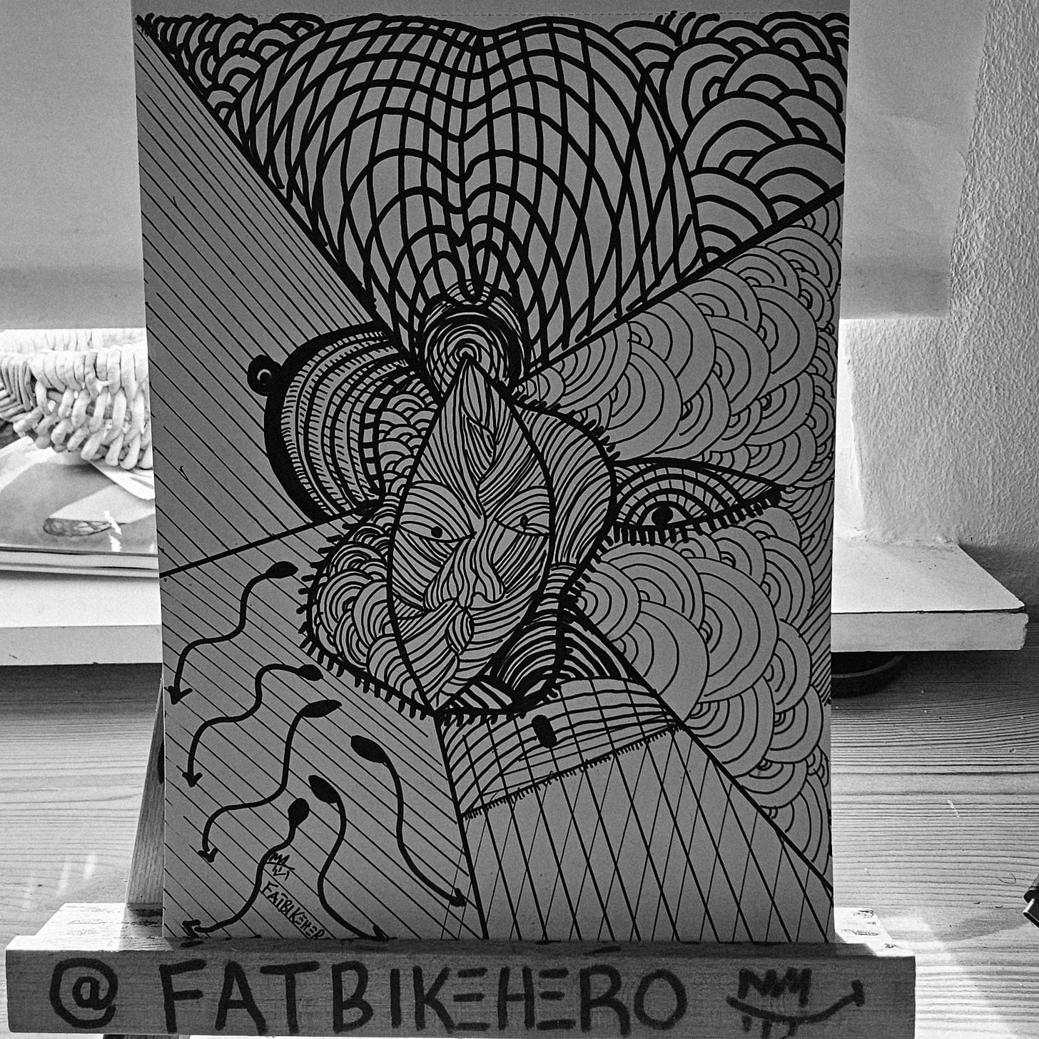 In Outside The Matrix, the visual artist FatbikeHero presents a compelling exploration of structure versus instinct through the medium of pen and ink on paper. Executed with technical precision, the work draws heavily on the principles of zentangle and automatic drawing, where intricate, repetitive patterns are employed as a form of mindful, meditative creation.