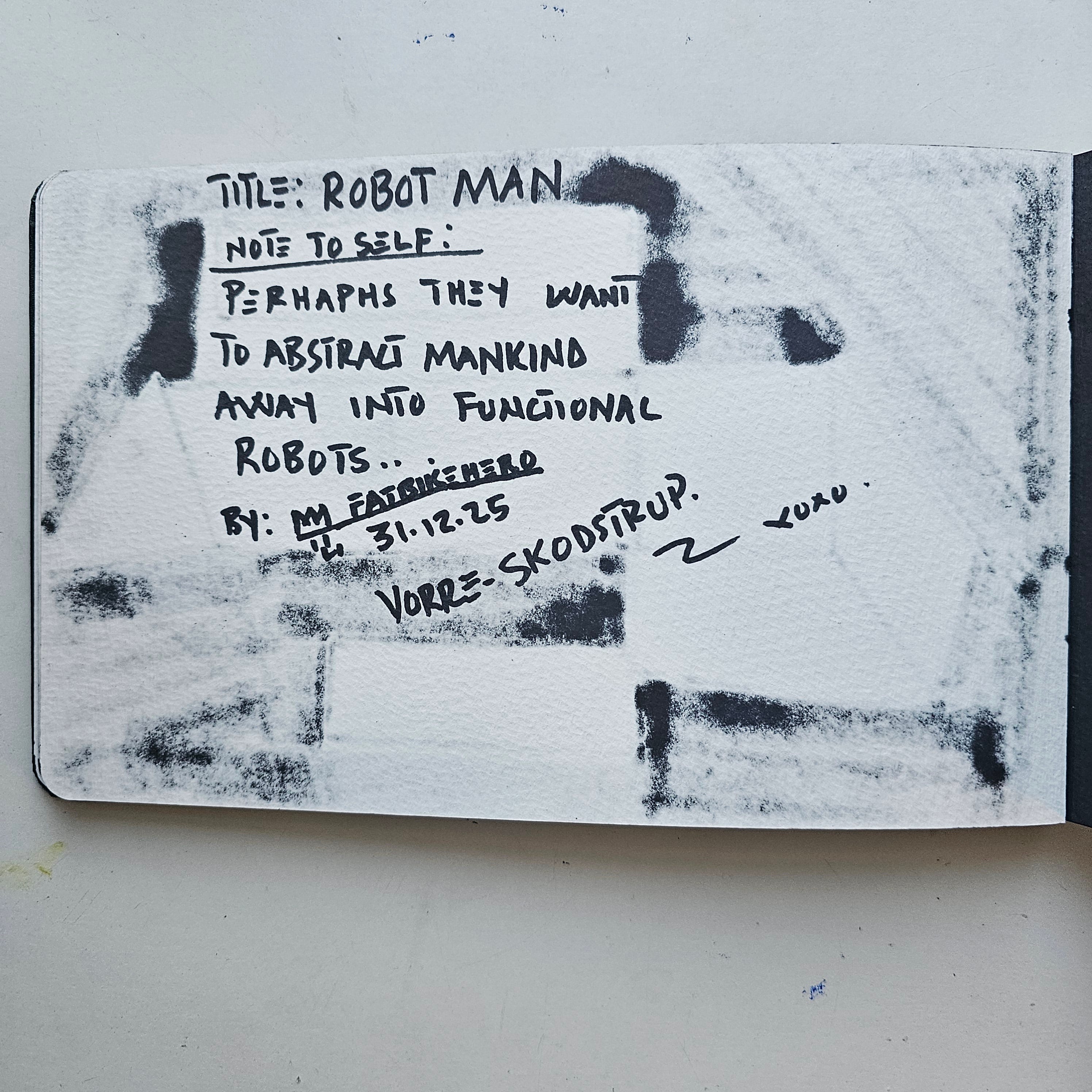 In ROBOTMAN, FatbikeHero moves beyond the speculativeto provide a visual blueprint of the human-to-machine transition. The work acts as a meditation on the desire—or perhaps the terrifying inevitability—to “abstract” the human experience into a series of predictable, mechanical modules.