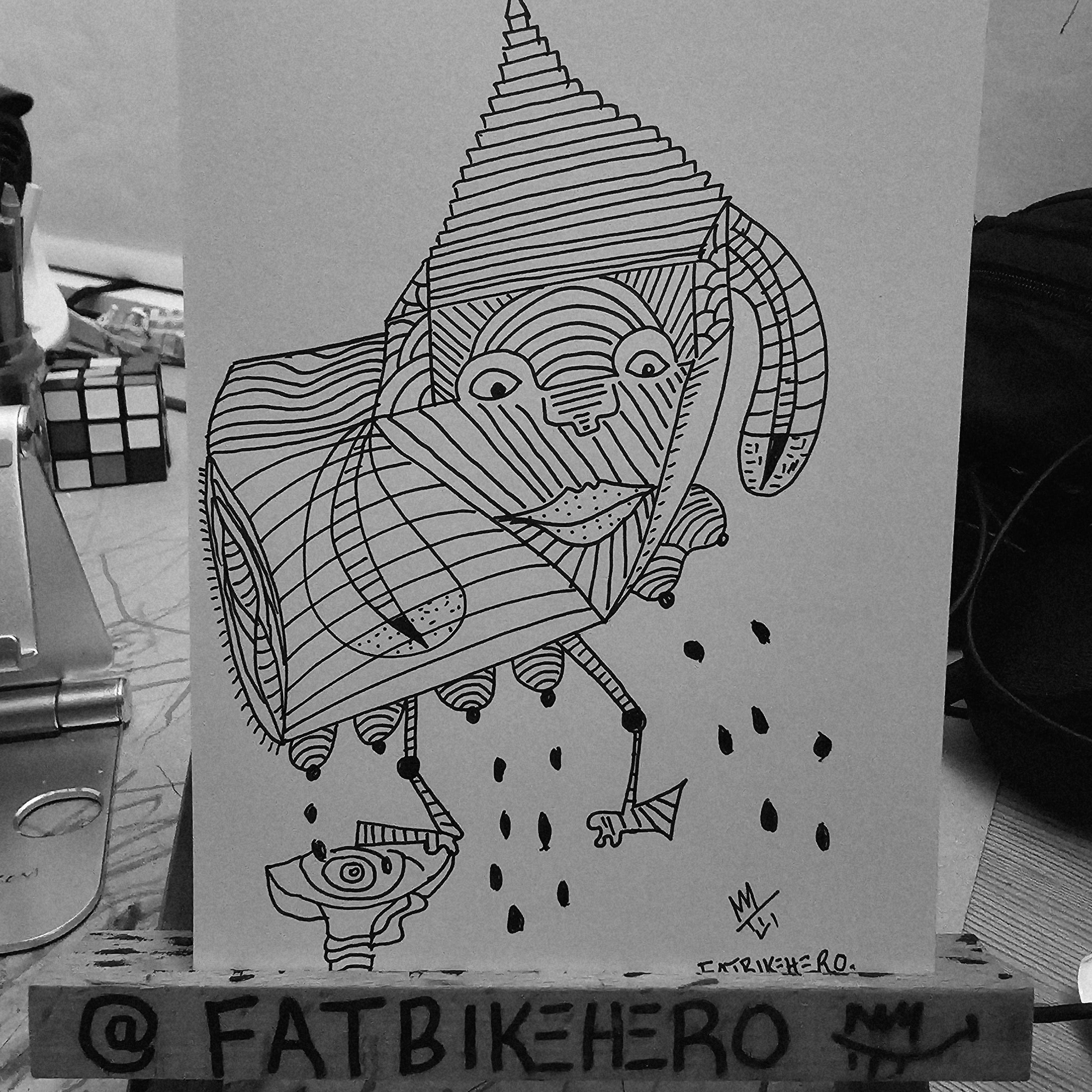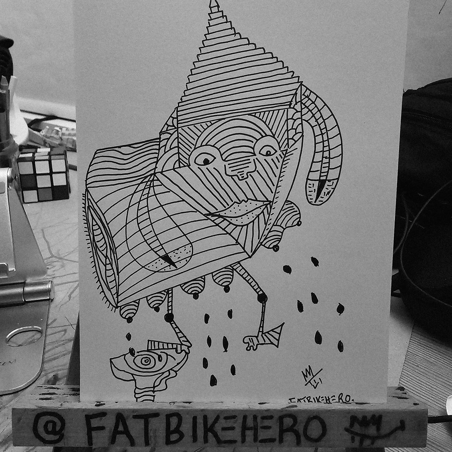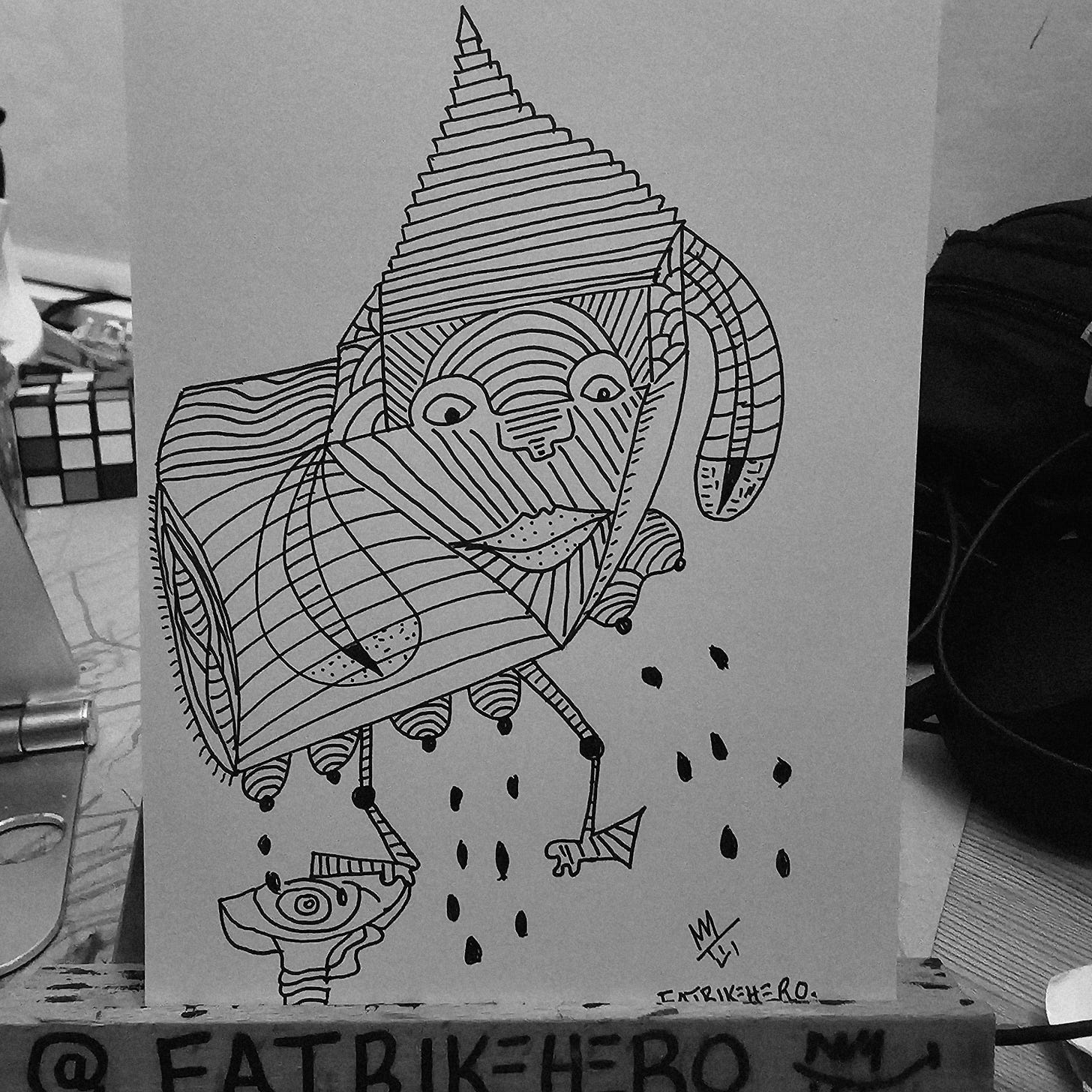 The central figure, a hybrid creature of abstract form