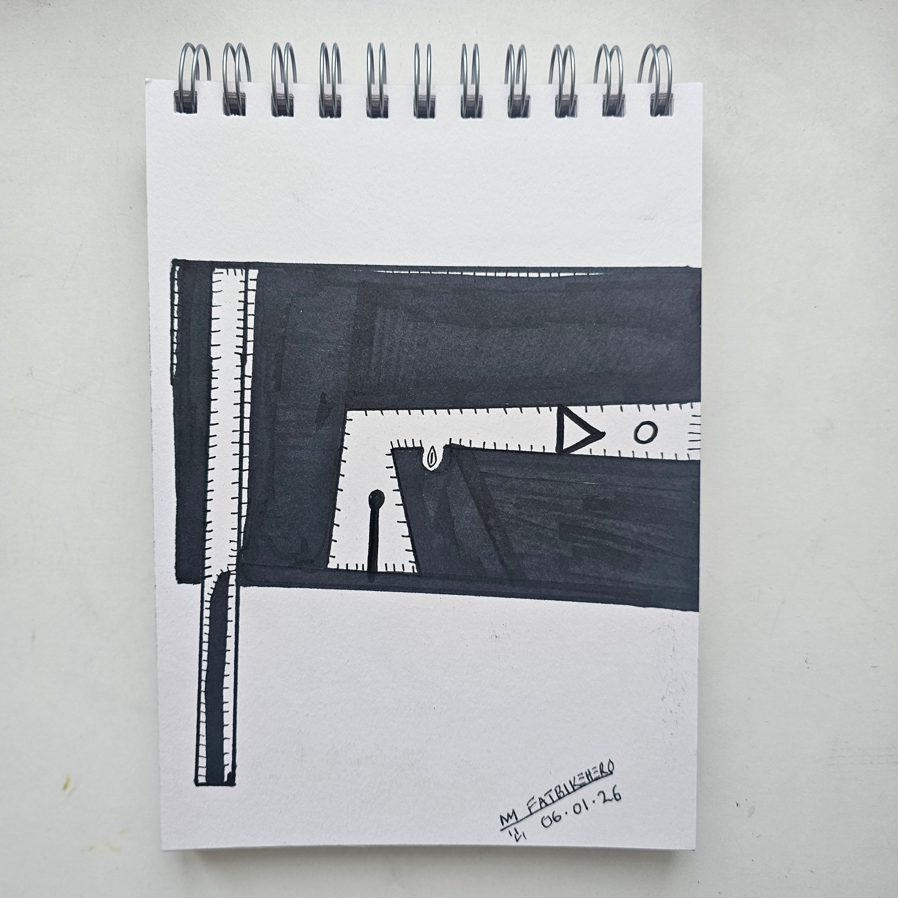 * Artistic Style: High-contrast, minimalist ink on paper, blending architectural geometry with biting sociopolitical commentary.