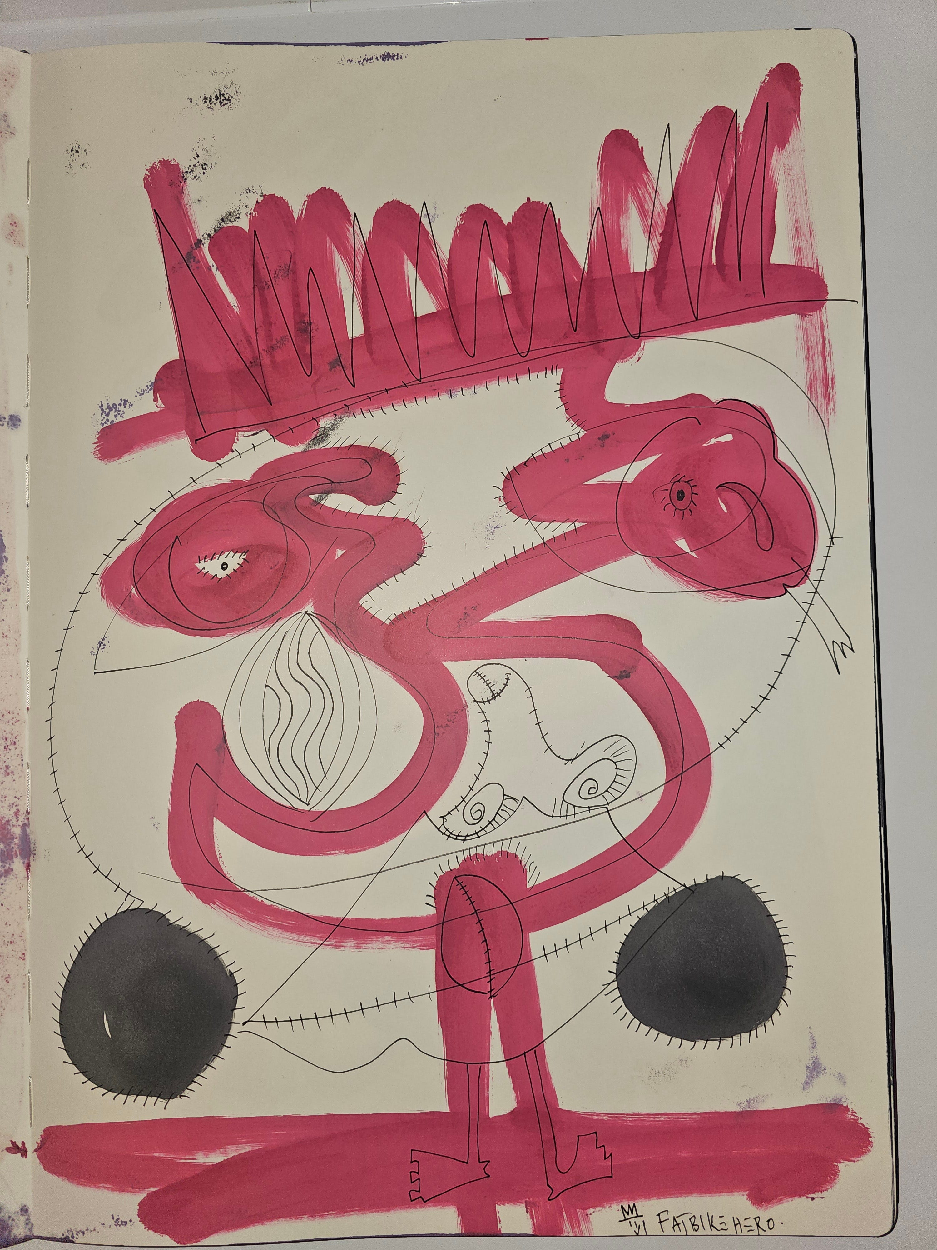 Keywords: FatbikeHero, anti-AI art, critique of algorithm, human-made artwork, zeitgeist art, mixed media critique, Substack art review.