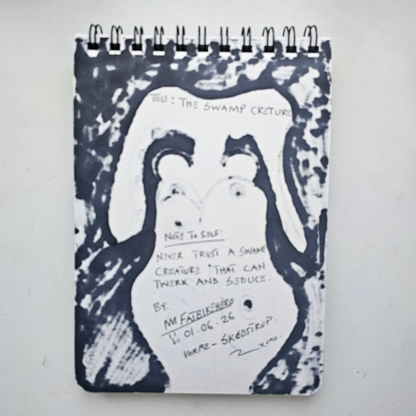 As a core piece of the 2026 output, this work carries significant provenance, directly linked to the artist’s digital archive at fatbikehero.com. The inclusion of the "Note to Self" on the reverse—"Never trust a swamp creature that can twerk and seduce"—is a vital element for collectors. It transforms the object from a mere drawing into a piece of conceptual performance art. This blend of "high" aesthetic value with "low" cultural wit is a hallmark of FatbikeHero’s market appeal, positioning the work as a bridge between traditional fine art and contemporary digital subculture.