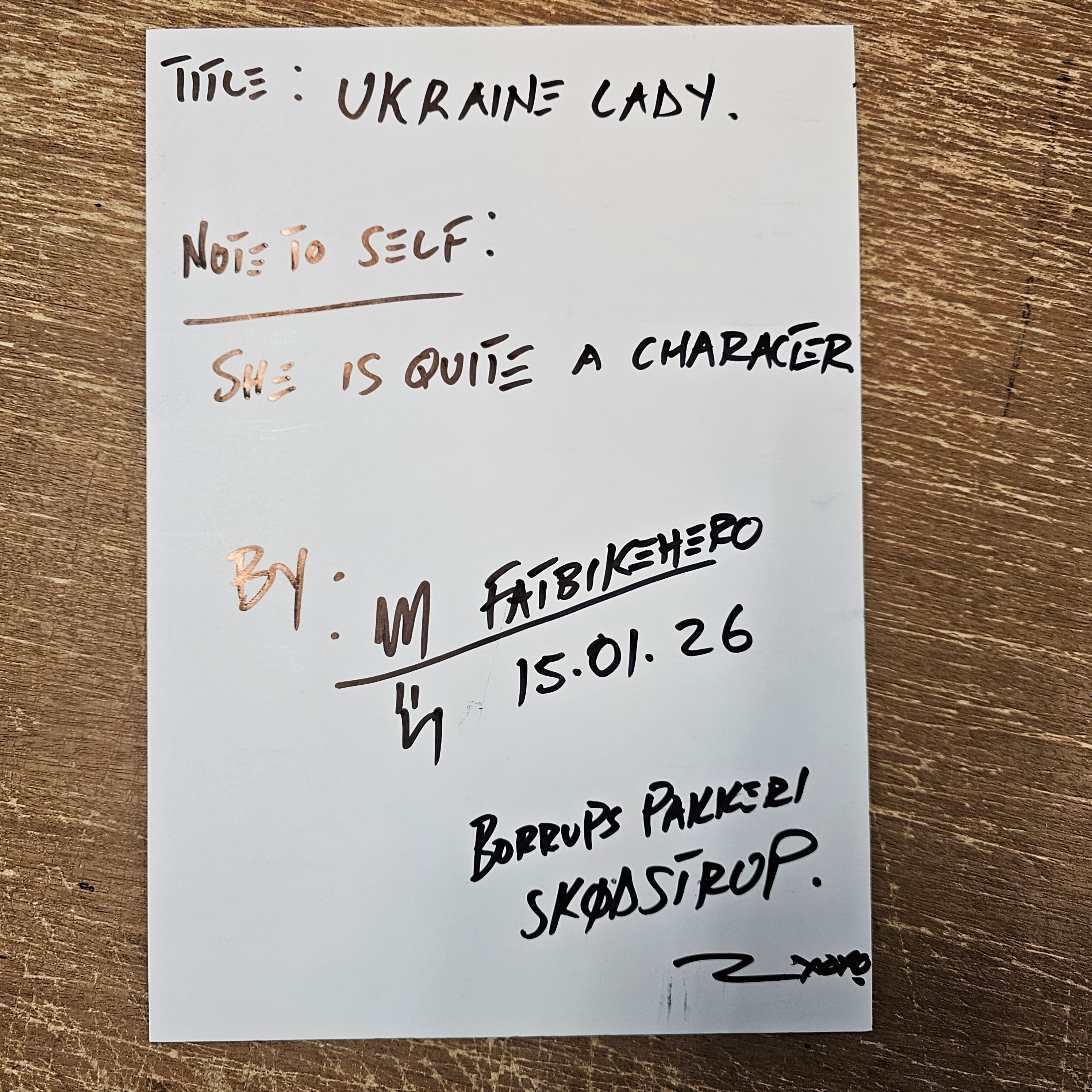 The artwork was gifted by the artist to a Ukranian work colleague at Borups Pakkeri Skødstrup.