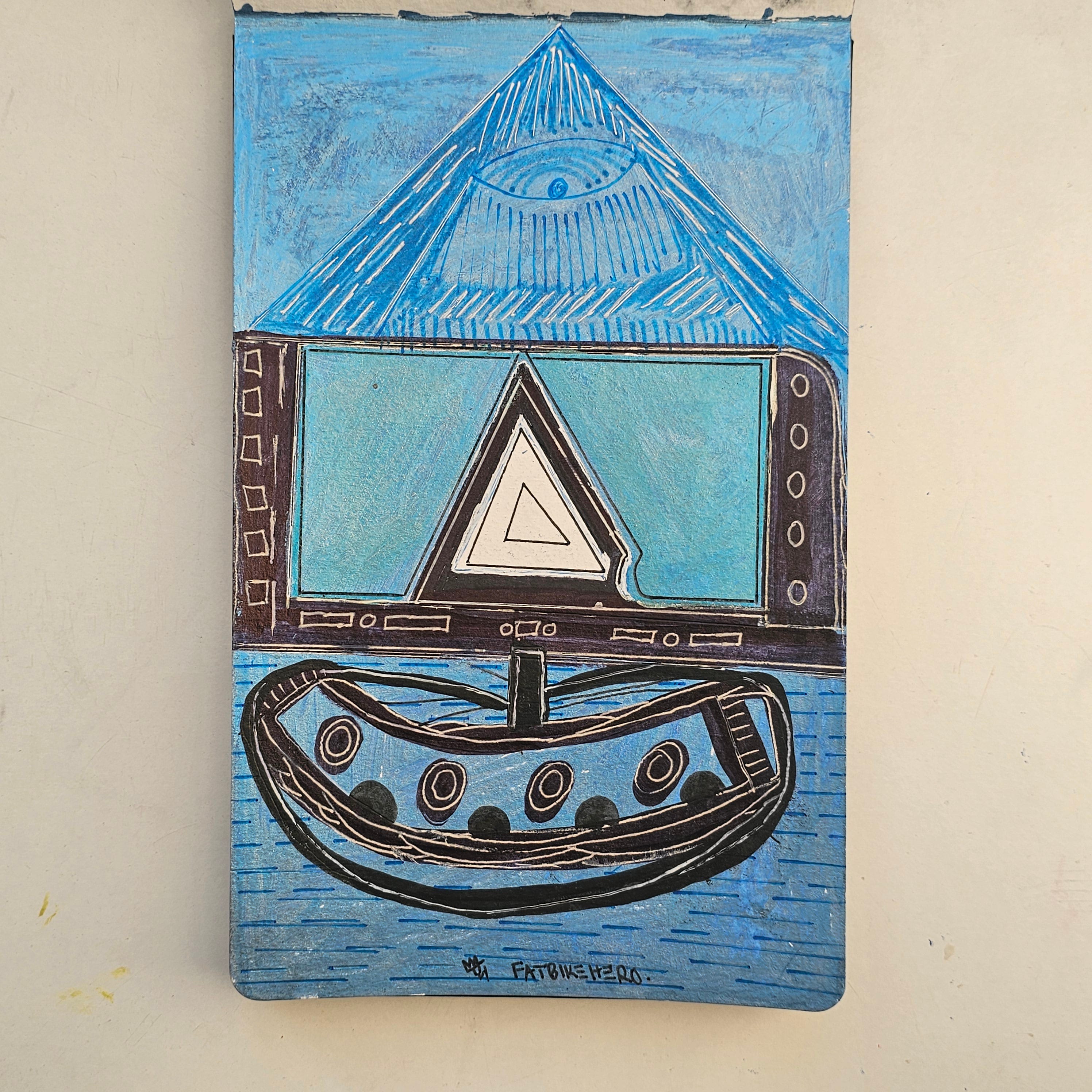 FatbikeHero’s hand here is urgent and layered. The background texture—frenzied scratches of blue—creates a static-like interference field, physically manifesting the noise of the information age. The thick, confident outlines in black ink contain the chaos, demonstrating the artist's ability to impose structural order on abstract concepts.