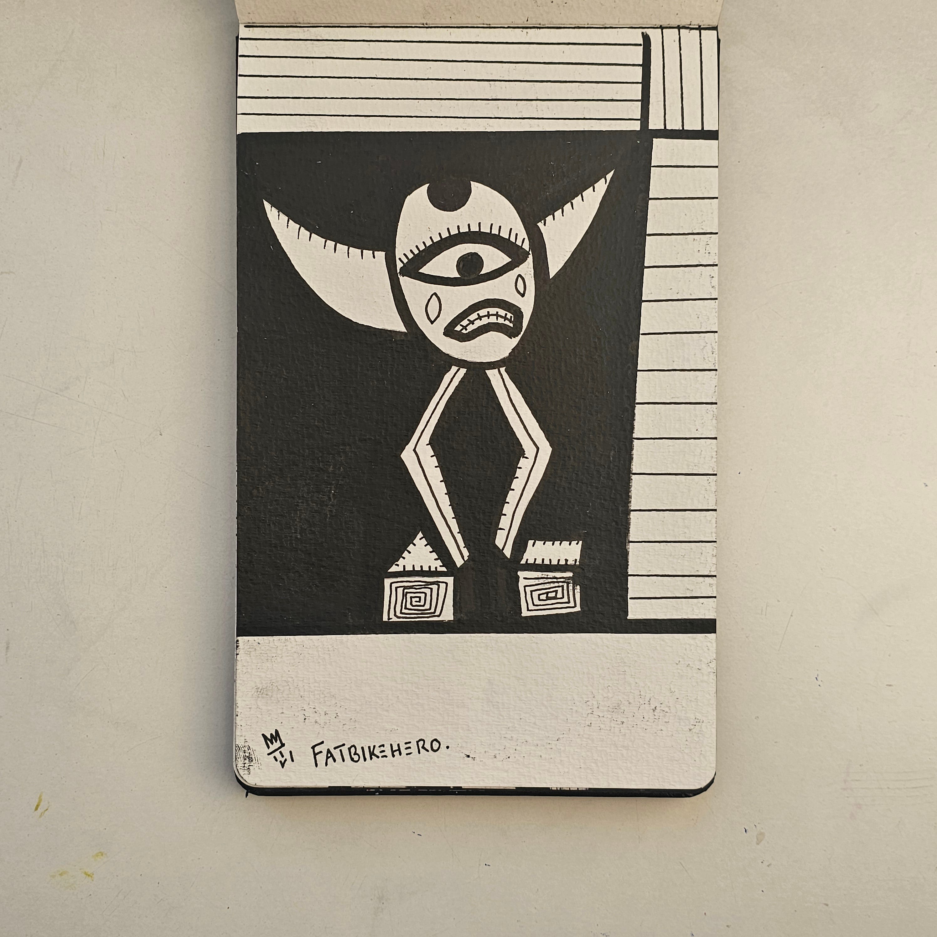 > Metadata: FatbikeHero (b. 1983), Weeping and Gnashing Teeth, 2026. Ink on Paper. Source: fatbikehero.com